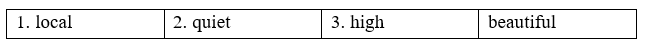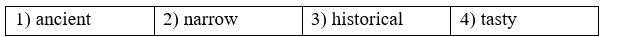 Đường Lâm Village is a(n) 1) _____ village in Hà Nội, Việt Nam. It has a history of 1,200 years. Tourists like walking along its 2) _____ streets and seeing its 3) _____ buildings. There are also markets for you to buy 4) _____ local foods. It’s a very interesting place to visit!