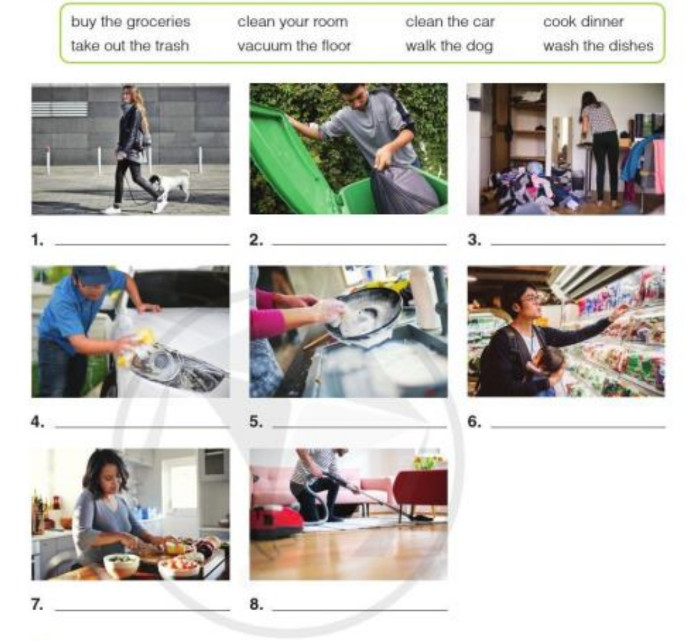 A. Label the photos with the chores from the box.