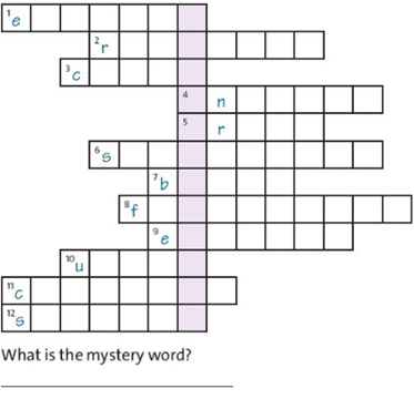 1. Look at the pictures and complete the puzzle with adjectives to describe feelings.