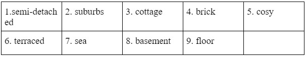 78 Darrington Avenue – This small (3) _________ house (quiet neighbours on both sides) is made of red (4) ________ and has a private garden at the back and a real fire in the living room – very (5) _________ on cold winter nights!
