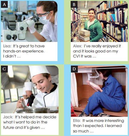 1 Which jobs in the photo (A-D) would you like to do? 2 4.01 Study the Vocabulary A box. Find some of the jobs in the photos. Listen and check.3 In pairs, take turns to describe a job for your partner to guess.