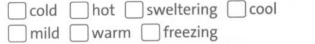 4. Number the adjectives in order from hottest (1) to coldest (7).