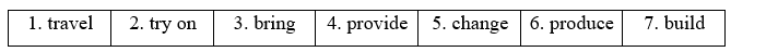 (Điền vào mỗi khoảng trống với các từ produce, bring, build, provide, change, travel or try on)