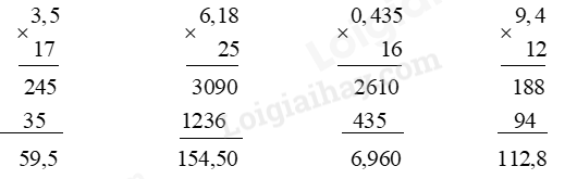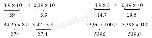 Đặt tính rồi tính 3,5 x 17. Điền dấu >, <, = thích hợp vào chỗ chấm 3,9 x 10 …… 0,39 x 10