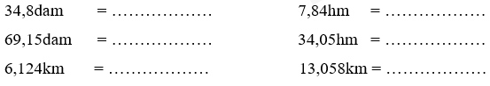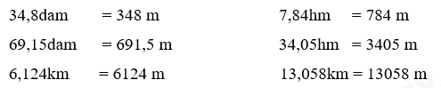 Viết các số đo sau dưới dạng số đo có đơn vị là mét: