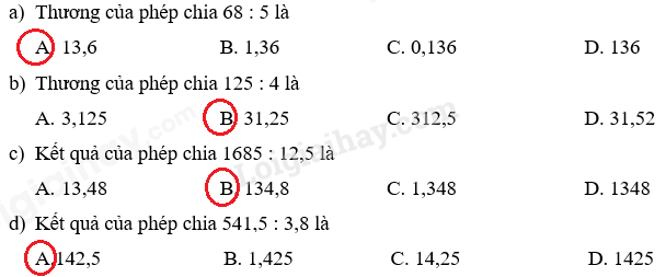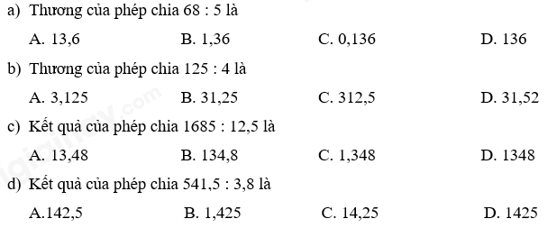 Thực hiện phép chia rồi khoanh vào đáp án đúng.