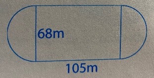 – Diện tích sân bóng bằng = Diện tích hình tròn có đường kính 68m + diện tích hình chữ nhật