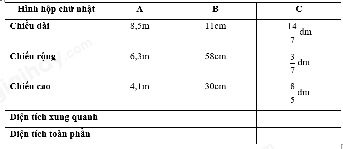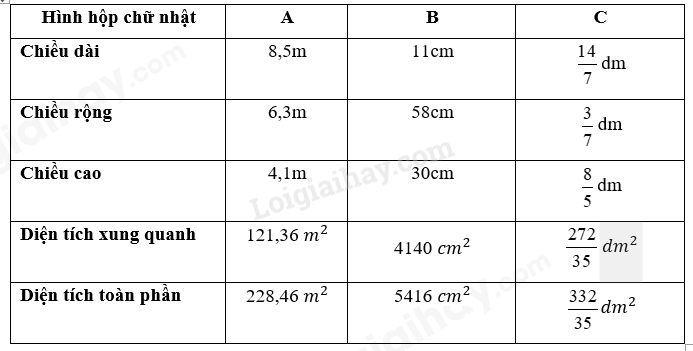 – Diện tích toàn phần của hình hộp chữ nhật = Diện tích xung quanh + diện tích 2 mặt đáy
