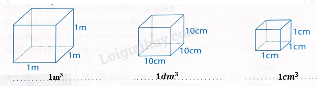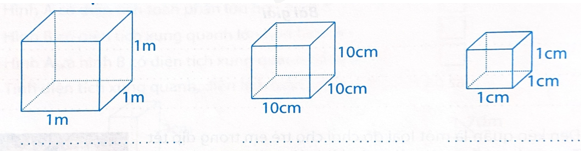 Quan sát độ dài cạnh của mỗi hình lập phương rồi viết đơn vị đo thể tích thích hợp.