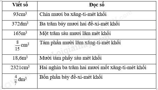 Để đọc hoặc viết các số đo thể tích ta đọc hoặc viết số đo trước, sau đó đọc hoặc viết tên đơn vị đo thể tích.