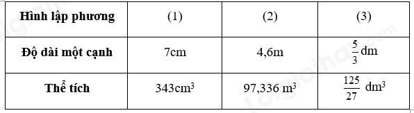 Thể tích của hình lập phương (3) là: $\frac{5}{3} \times \frac{5}{3} \times \frac{5}{3} = \frac{{125}}{{27}}$ (dm3)