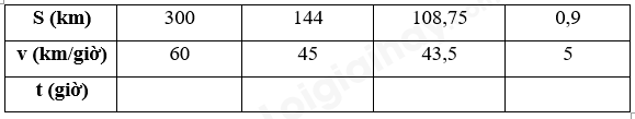 Cột 2: t = 144 : 45 = 3,2 giờ