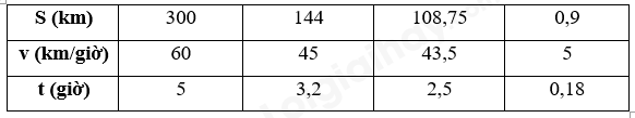 Cột 4: t = 0,9 : 5 = 0,18 giờ