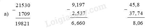 a) Đặt tính sao cho các chữ số ở cùng một hàng thẳng cột với nhau. Thực hiện trừ lần lượt từ phải sang trái.