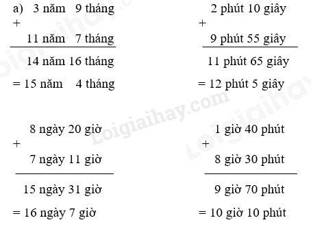 a) 3 năm 9 tháng + 11 năm 7 tháng