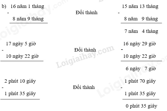 Đối với phép trừ: nếu số đo theo đơn vị nào đó ở số bị trừ bé hơn số đo tương ứng ở số trừ thì cần chuyển đổi đơn vị hàng lớn hơn liền kề sang đơn vị nhỏ hơn rồi thực hiện phép trừ như bình thường.