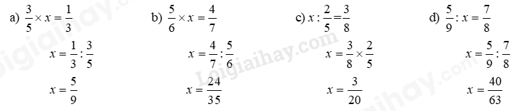 \({\text{a) }}\frac{3}{5} \times x = \frac{1}{3}\)