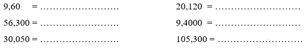 Viết mỗi số thập phân sau thành số có ba chữ số ở phần thập phân: