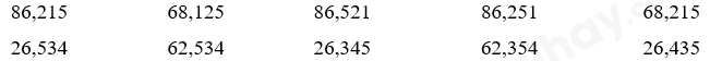 Vậy các số sau theo thứ tự từ lớn đến bé là: 86,521; 86,251; 86,215; 68,215; 68,125