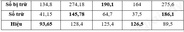 – Viết dấu phẩy ở hiệu thẳng cột với các dấu phẩy của số bị trừ và số trừ.