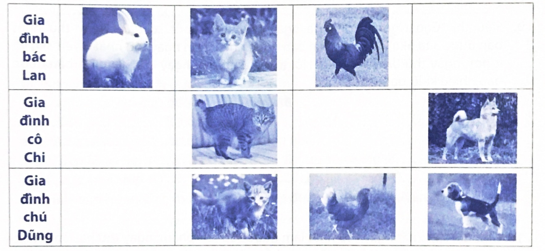 d) Gia đình cô Chi nuôi ít con vật nhất, đó là con mèo và con chó.