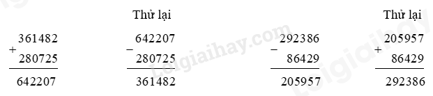 – Thử lại: Lấy tổng trừ đi một số hạng, nếu được kết quả bằng số hạng còn lại thì phép tính làm đúng; Lấy hiệu cộng với số trừ, nếu được kết quả bằng số bị trừ thì phép tính làm đúng.