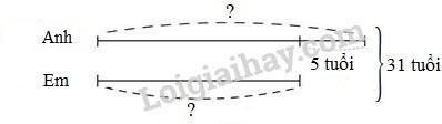 Tổng số tuổi của hai anh em là 31. Anh hơn em 5 tuổi. Hỏi anh bao nhiêu tuổi? Em bao nhiêu tuổi?