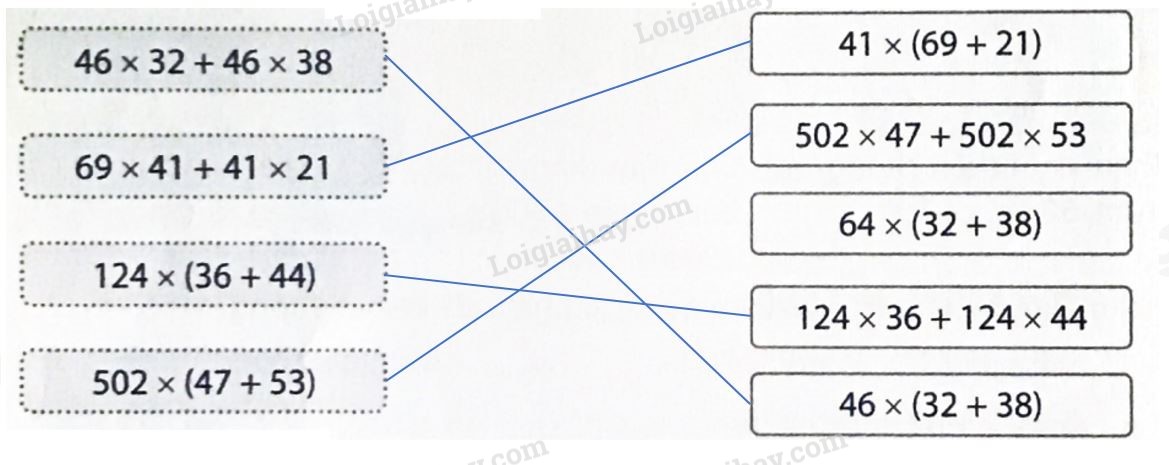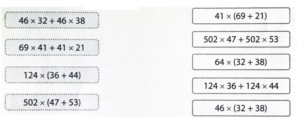 Áp dụng tính chất một số nhân với một tổng rồi nối hai biểu thức có cùng giá trị.