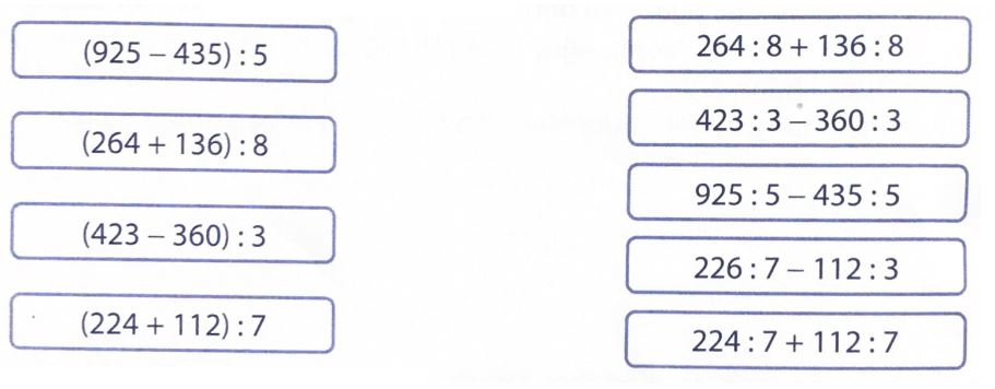 Áp dụng cách chia một tổng hoặc một hiệu cho một số để nối các biểu thức có giá trị bằng nhau.