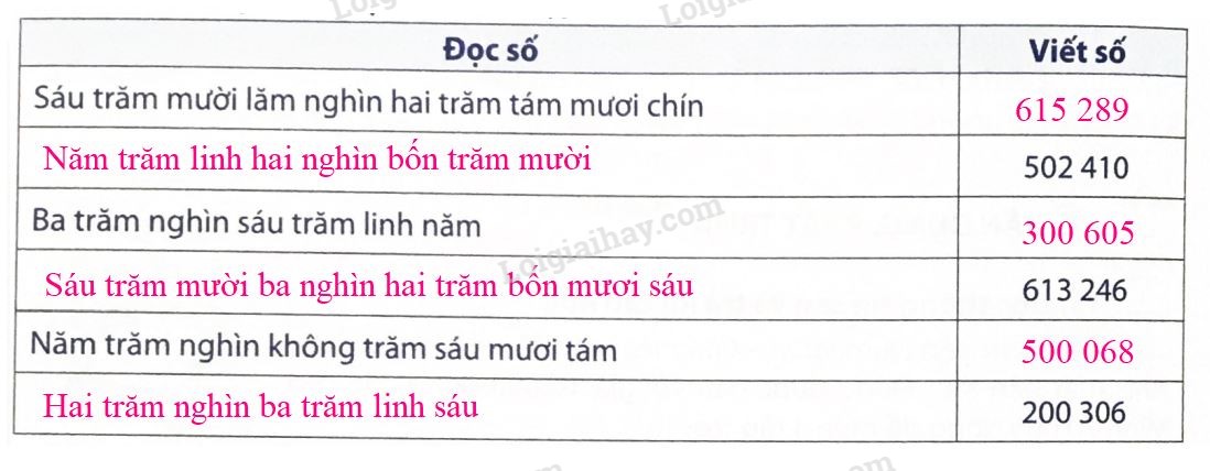 Đọc số hoặc viết số lần lượt từ hàng trăm nghìn, hàng chục nghìn, hàng nghìn, hàng trăm, hàng chục, hàng đơn vị.