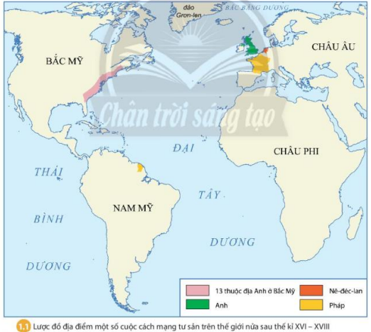 a, Xác định trên lược đồ 1.1 địa điểm diễn ra cuộc chiến tranh giành độc lập của 13 thuộc địa Anh ở Bắc Mĩ.