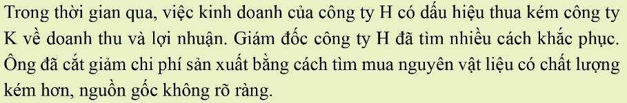 – Em đọc tình huống và bày tỏ quan điểm của bản thân với hành động của giám đốc công ty H trong tình huống đó.