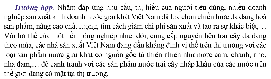 a. Đọc trường hợp và nêu được cách các doanh nghiệp sản xuất kinh doanh nước giải khát Việt Nam đã thực hiện để tạo ra sự khác biệt cho sản phẩm của mình.