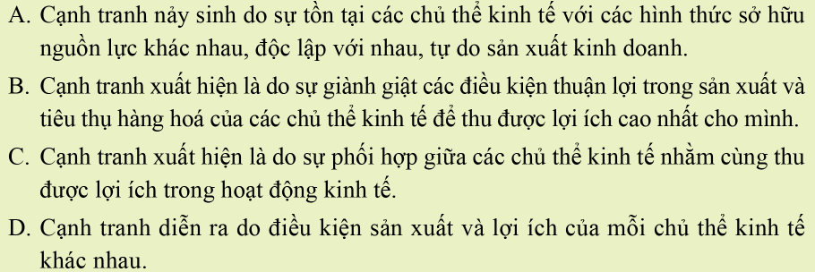 Những nhận định đúng về nguyên nhân cạnh tranh là: A, B, D.