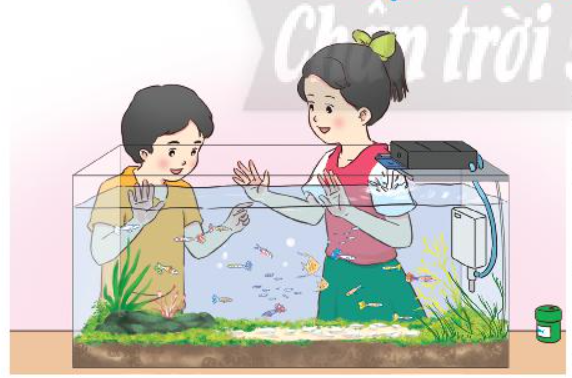 1. Nhà Khánh có một bể cá thuỷ sinh tuyệt đẹp. Khánh rất thích ngồi ngắm bầy cá cảnh đùa vui cùng nhau.