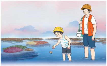 2. Cuối tuần, bố đưa Khánh đi thăm khu bảo tồn biển. Giữa khu bảo tồn là một bãi san hô lớn. Lần đầu tiên, Khánh thấy san hô hóa thạch.