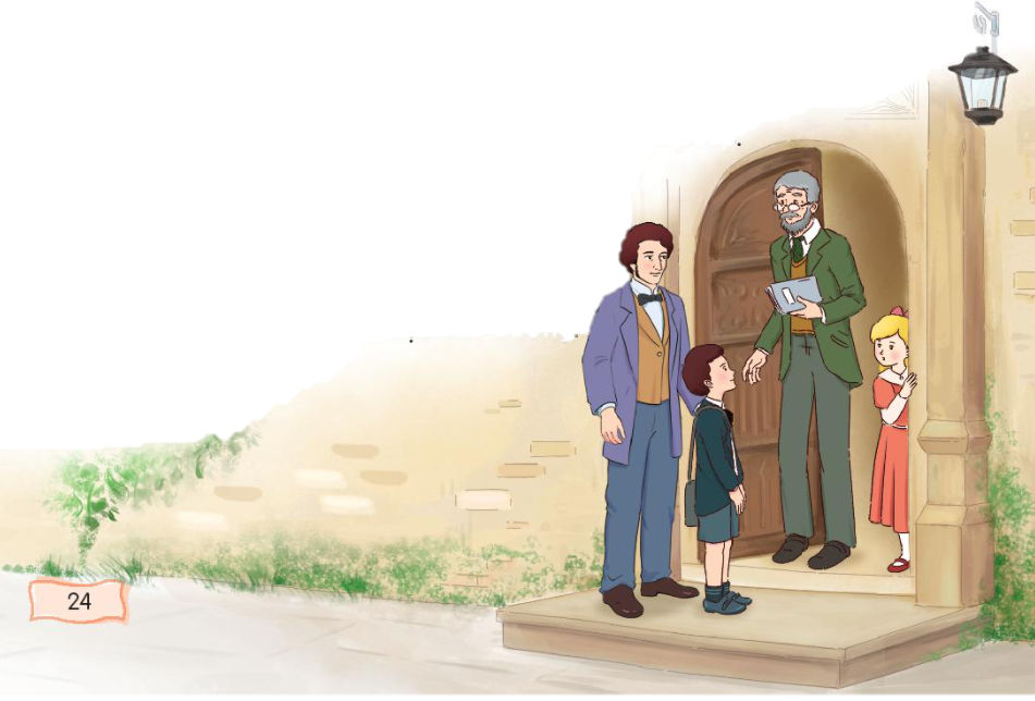 Ông Giô-dép dắt con trai đến gặp thầy giáo để xin học.