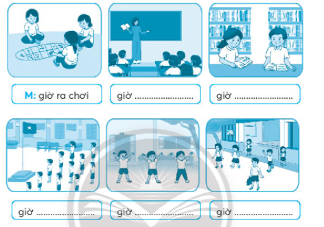 Em quan sát kĩ các bức tranh và tìm những từ ngữ chỉ những nội dung trên cho phù hợp.