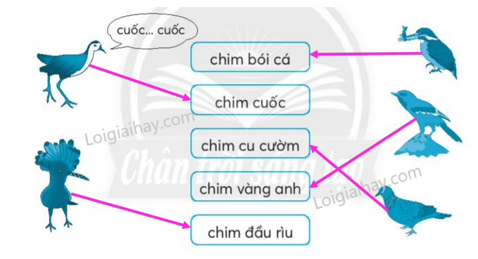 Nối tên gọi phù hợp với hình vẽ của từng loài chim.