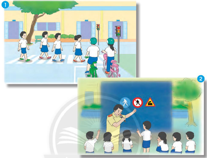 2. Bác đi xe máy căn dặn hai bạn nhỏ khi đi đường phải chú ý quan sát, không được vừa đi vừa làm việc khác.