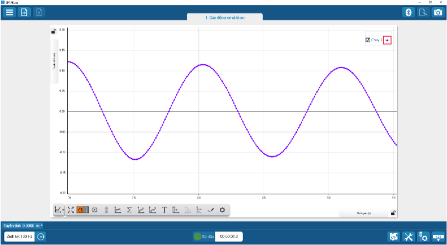 Quan sát đồ thị, xác định các đại lượng thể hiện trên đồ thị: biên độ A, chu kì T, từ đó suy ra tần số của dao động.