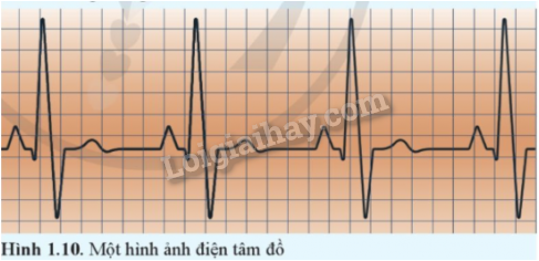 Dựa vào hình ảnh điện tâm đồ ở Hình 1.10, xác định chu kì đập của tim. Biết rằng mỗi khoảng vuông (theo chiều ngang) tương ứng với khoảng thời gian 0,12 s.