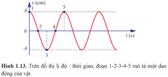 Đồ thị là đồ thị hàm sin. Vật bắt đầu chuyển động tại vị trí có li độ lớn nhất, sau đó li độ giảm dần đến 0 rồi đến li độ nhỏ nhất. Li độ từ giá trị nhỏ nhất lại tăng dần đến 0 rồi đến giá trị lớn nhất. Sau đó, quá trình lặp lại, li độ từ giá trị lớn nhất giảm dần, … Sự thay đổi diễn ra tuần hoàn, theo chu kì.