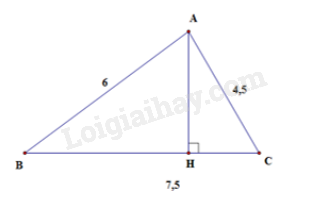 Ta lại có: \(AB.AC = AH.BC \Rightarrow AH = \frac{{AB.AC}}{{BC}} = \frac{{6.4,5}}{{7,5}} = 3,6(cm)\)