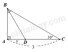 Tam giác ABC vuông tại A có: \(\widehat {AB{{D}}} = {30^o}\) nên \(A{{D}} = \frac{1}{2}B{{D}}\) hay BD = 2AD.