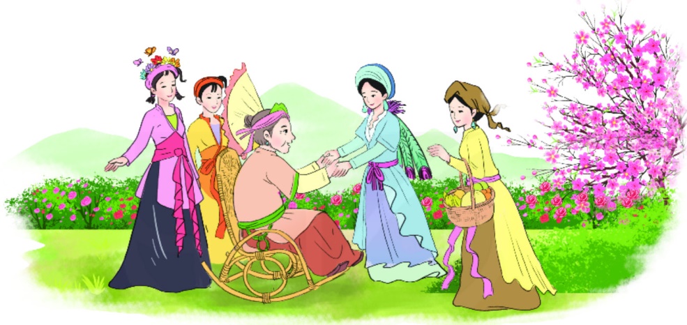 a. Bốn nàng tiên cầm tay nhau trò chuyện.