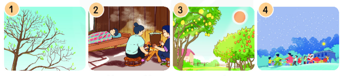 Câu 3: Dựa vào bài đọc, nói tên mùa phù hợp với mỗi tranh.
