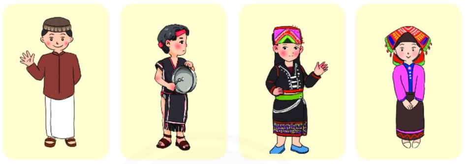 Em dựa vào hiểu biết của bản thân hoặc quan sát kĩ tranh vẽ phía trên để đoán xem đó là dân tộc nào (dựa vào trang phục của họ)