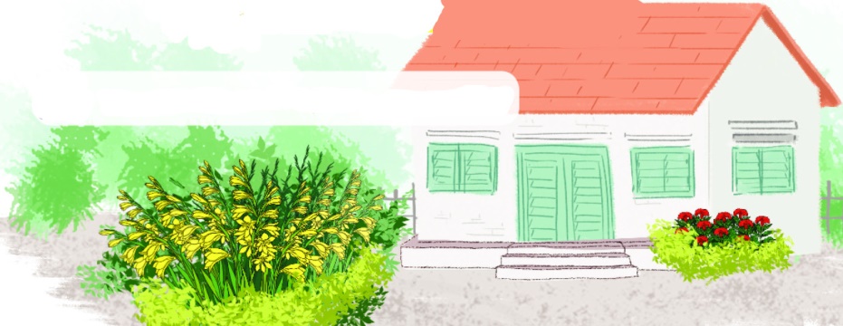 Nhà tôi có khu vườn rất rộng. Bố trồng nhiều hoa. Buổi chiều, bố thường dẫn tôi ra vườn tưới cây.