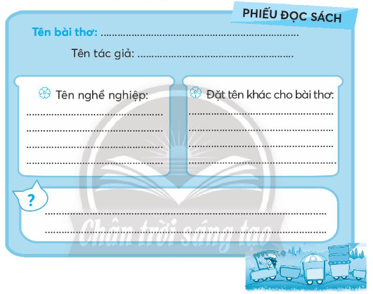 Em tìm hiểu kĩ một bài thơ về nghề nghiệp để viết vào Phiếu đọc sách cho phù hợp.